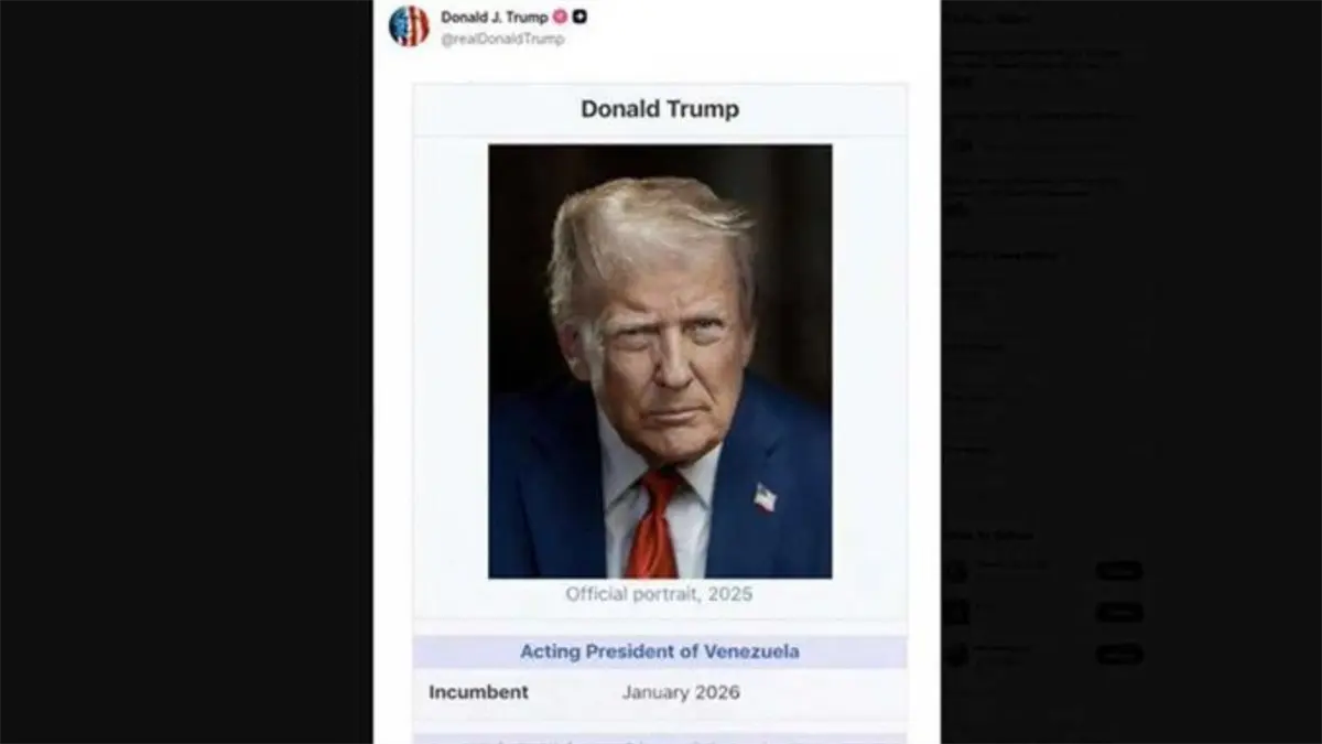 Nueva York.– El presidente estadounidense, Donald Trump, publicó este domingo en Truth Social una imagen manipulada de su perfil en Wikipedia, en la que se atribuye el cargo de «presidente interino de Venezuela» a fecha de enero de 2026.