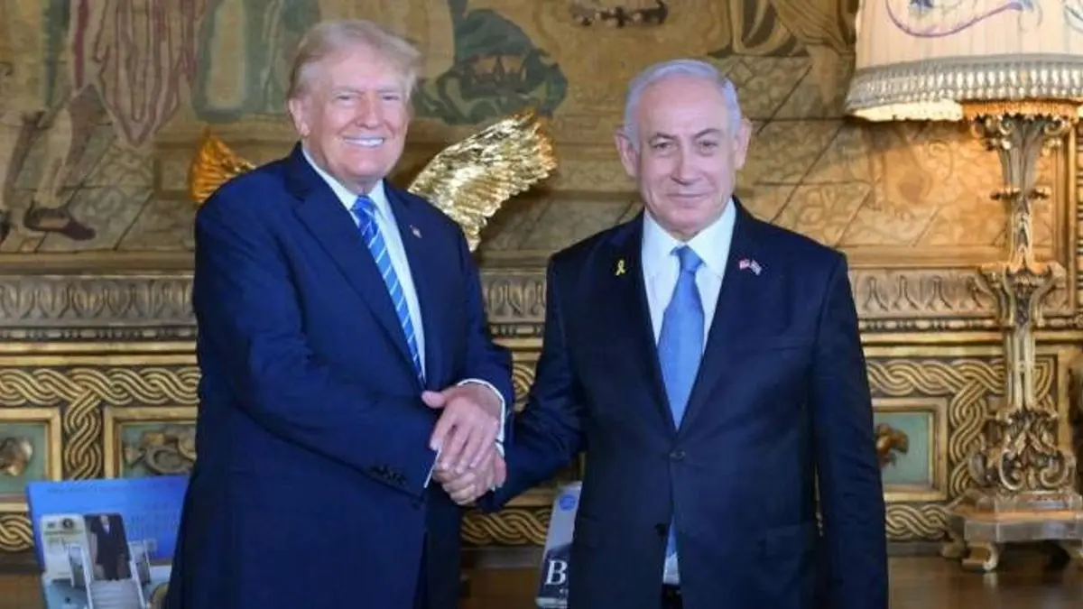 Trump recibió con gesto de cercanía al mandatario israelí en la puerta de su mansión y ambos se saludaron dándose la mano con firmeza, para luego pasar al interior, según se observa en un video publicado en redes sociales por miembros de la campaña del expresidente.