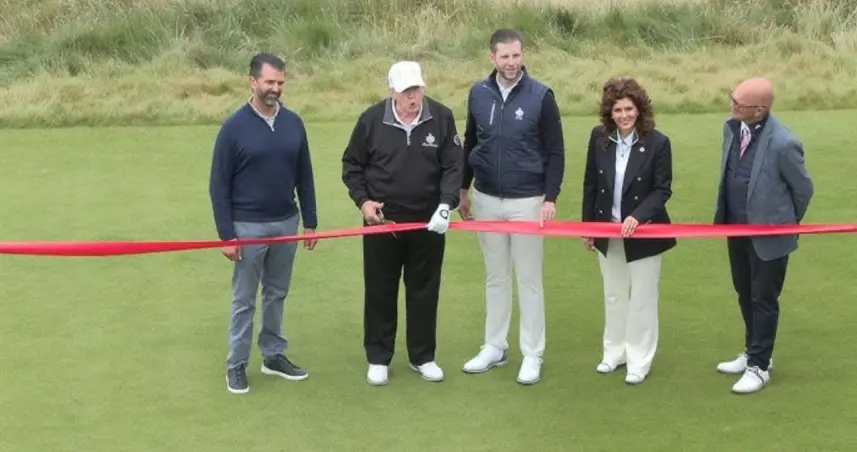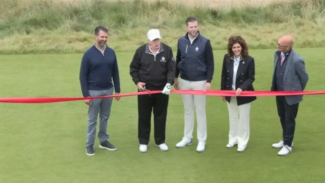 Trump, apasionado del golf, inauguró personalmente este nuevo campo de su complejo de Balmedie, y cortó la cinta inaugural en presencia de sus hijos Donald Jr. y Eric, los actuales responsables del holding familiar propietario de las instalaciones.
