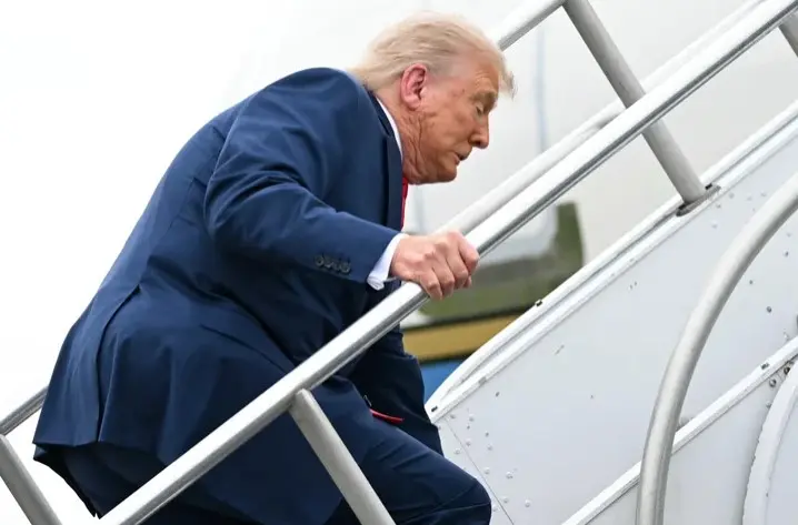 El video muestra a Trump subiendo la escalinata del avión presidencial cuando, a mitad de camino, pierde brevemente el equilibrio. Aunque logró sujetarse del pasamanos y evitar una caída, el momento generó una oleada de comentarios en redes sociales.