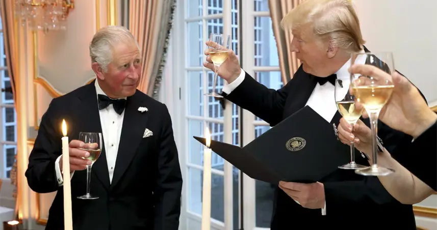 A pesar de que Trump no consume alcohol, se sirvieron vinos en su honor, incluyendo un Oporto Vintage Warre's 1945 (por ser el 45º y 47º presidente de EE.UU.), un coñac Hennessy 1912 (año de nacimiento de su madre escocesa, Mary Anne MacLeod) y champán Pol Roger, el preferido de Winston Churchill.