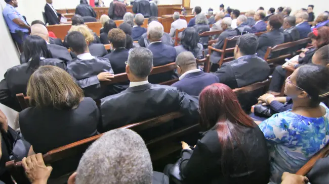 Santo Domingo.– Santo Domingo.- En una segunda audiencia el Tribunal Superior Administrativo dejó este miércoles en “estado de fallo” una acción de amparo de cumplimiento presentada por el Colegio Dominicano de Notarios contra la Procuraduría General de la República, por la supuesta retención ilegal de más de 105 millones de pesos en perjuicio del gremio profesional. La presidenta de la entidad, doctora Laura E. Sánchez Jiménez, estuvo acompañada de notarios, quienes reclamaron la aplicación de la ley para que el colegio garantice los planes de pensiones, ayudas médicas y cuente con los recursos necesarios para la firma digital.