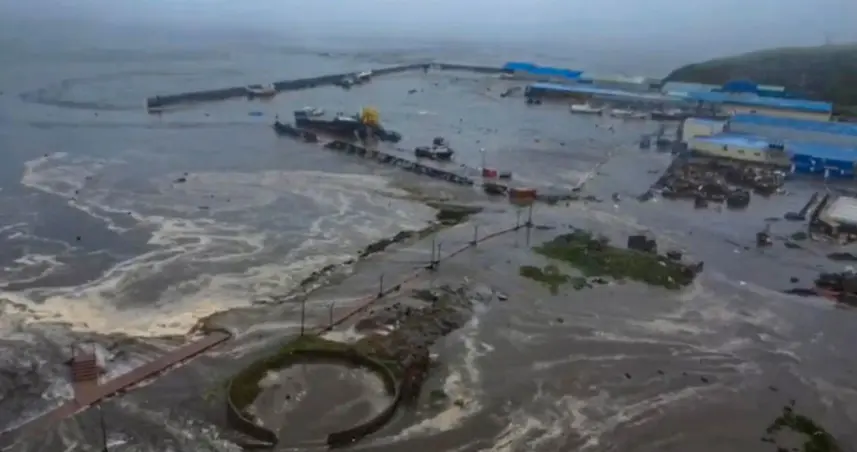 Tsunami en Rusia deja edificios sumergidos bajo el agua