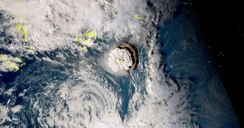 El impacto tuvo lugar a pesar de que la costa californiana está situada a casi 8.700 kilómetros (5.400 millas) de la nación insular de Tonga, en el Pacífico Sur, donde se produjo la erupción volcánica.