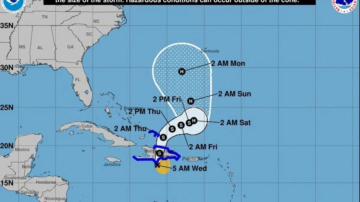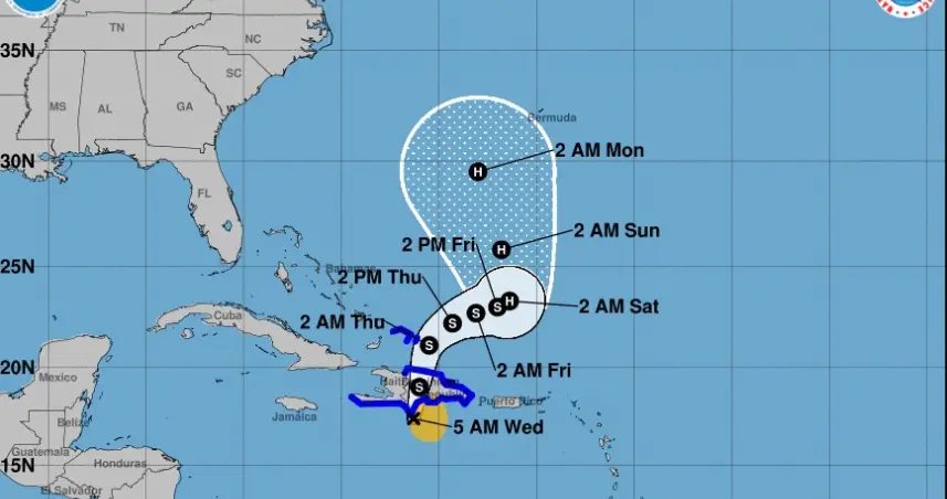 Según la trayectoria se espera el centro de Franklin cruce la isla Hispaniola hoy sobre aguas del suroeste del Atlántico, más tardar esta noche.
