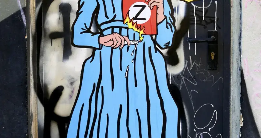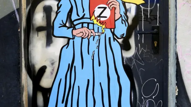 Un artista dibuja a Ana Frank quemando la Z de Putin en un mural en Milán