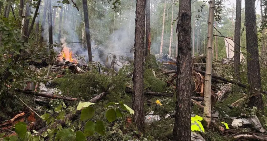 En las imágenes se ve una columna de humo que se eleva en medio de numerosos árboles y llamas cerca de lo que parecen ser restos del aparato.