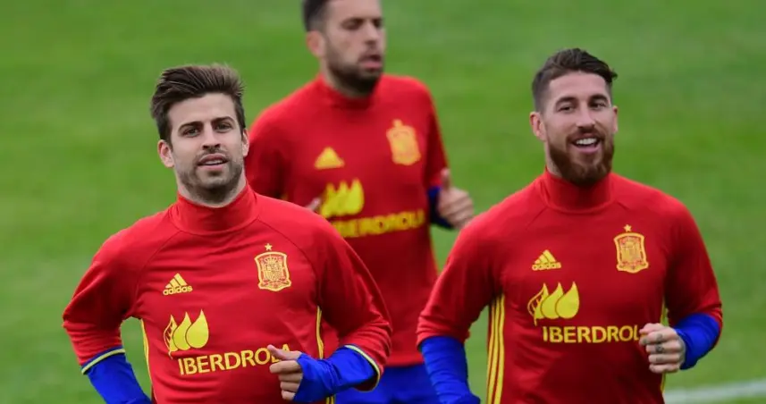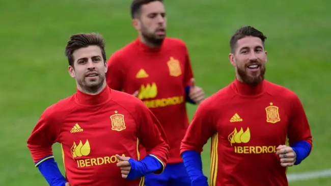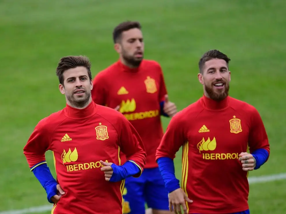 Un beso entre Piqué y Sergio Ramos para defender el diálogo Cataluña-España