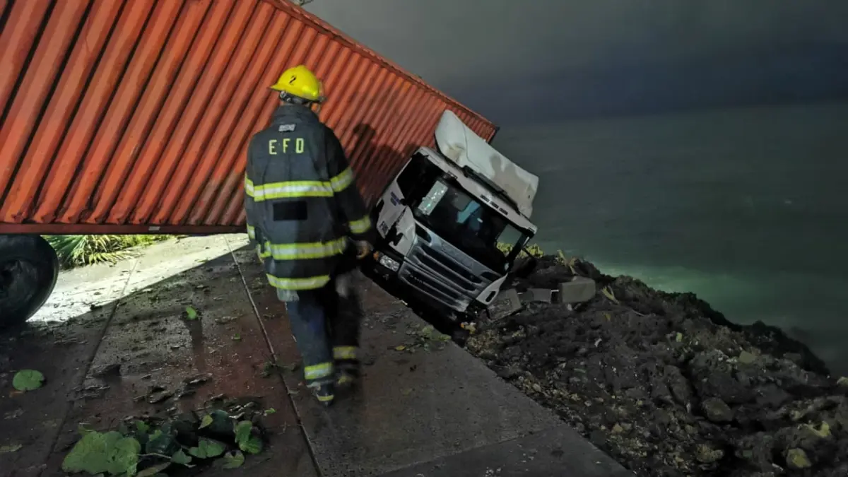 Un camión casi cae al mar Caribe tras accidentarse en el Malecón