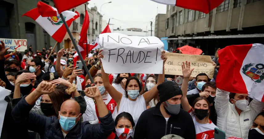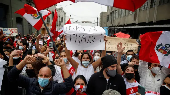 En la protestas también se escucharon gritos contra Vladimir Cerrón, el fundador del partido Perú Libre, del candidato presidencial Pedro Castillo o contra el expresidente peruano Martín Vizcarra (2018-2020).
