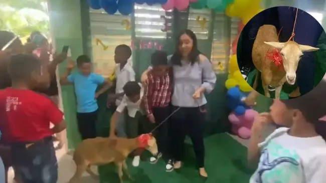 Un chivo fue el regalo de un niño a su profesora al terminar año escolar