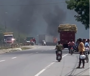 Al parecer el incidente se registró entre un camión, que terminó quemado, y un motor.
