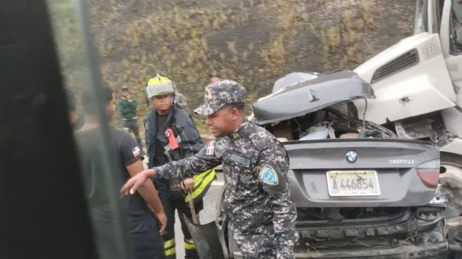Aún se desconoce el número de heridos y las causas que provocaron la colisión entre la jeepeta marca Toyota Rav4, un carro BMW y el camión.