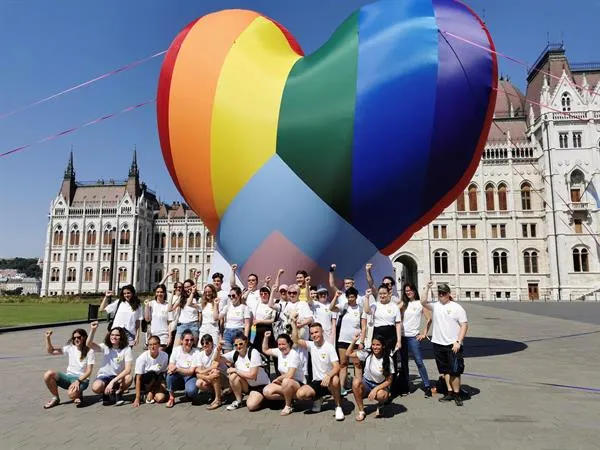 Budapest.- Varias organizaciones han inflado hoy en Budapest un globo arcoiris para protestar contra la ley, calificada de homófoba por la Unión Europea, que limita hablar a los menores sobre la homosexualidad y la vincula con la pederastia.