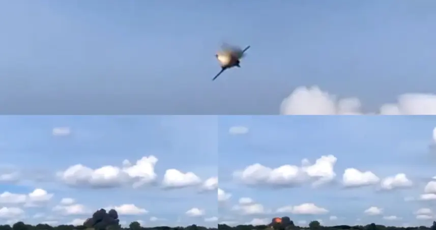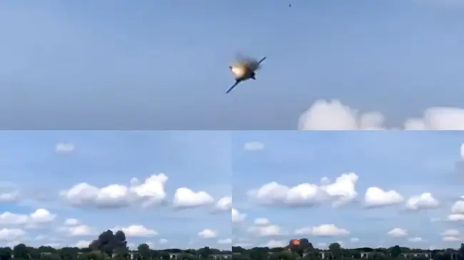 En redes sociales circulan varios videos en el que la aeronave interrumpe su vuelo para expulsar a su piloto después de una explosión y termina cayendo en la localidad de Van Buren Township.