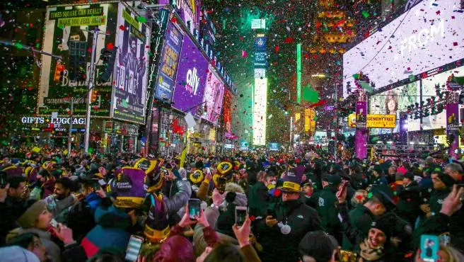 La multitudinaria fiesta de fin de año en Times Square es mundialmente conocida y, pese al frío, muchas personas alrededor del mundo viajan a Nueva York expresamente para presenciar el evento.