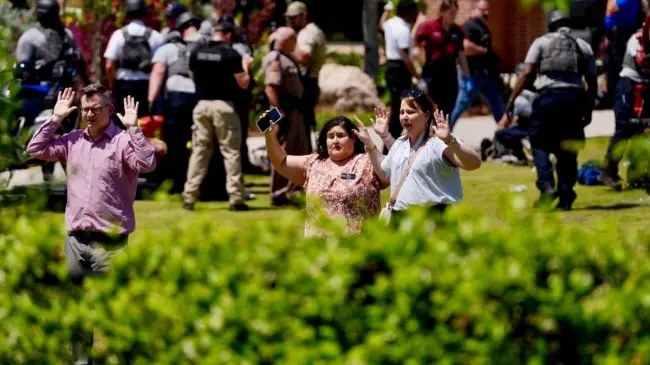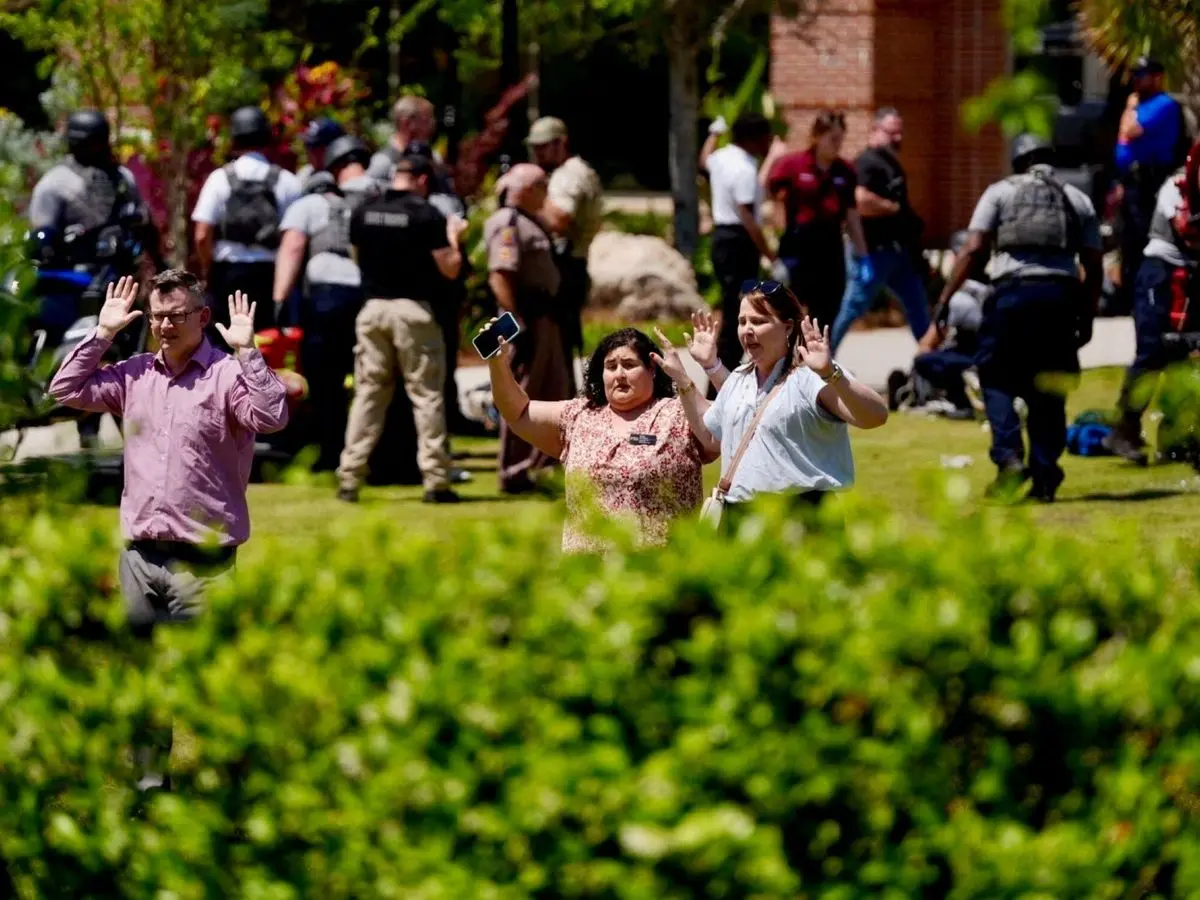 Imágenes en redes sociales mostraron a agentes armados buscando al tirador en los edificios de la universidad. Las autoridades crearon un código para que los estudiantes encerrados en los salones reportaran que estaban seguros.
