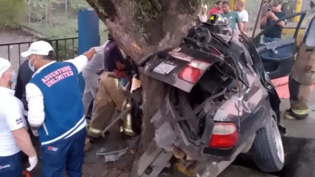 La víctima mortal fue identificada como Cristian Marrero, quien iba como pasajero, mientras que el conductor, identificado como Juan Carlos Taveras, presenta lesiones graves.