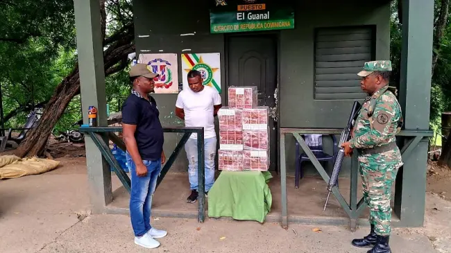 Santiago Rodríguez.– Santiago Rodríguez.- Un pasajero de autobús fue detenido por miembros del Ejército en el puesto de chequeo El Guanal, el cual llevaba 21 mil cigarrillos de procedencia ilegal.