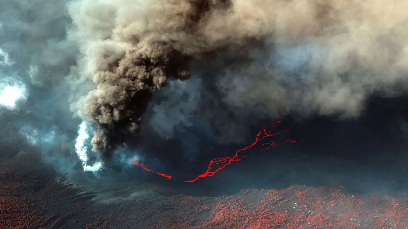 Santa Cruz de La Palma (España).- Las efusiones del volcán de la isla española de La Palma han dado lugar este viernes a un "tsunami" de lava, como lo han definido los geólogos, que ha provocado que la colada más activa de las tres actuales siga su avance y el magma afecte ya a 732 hectáreas de terreno.