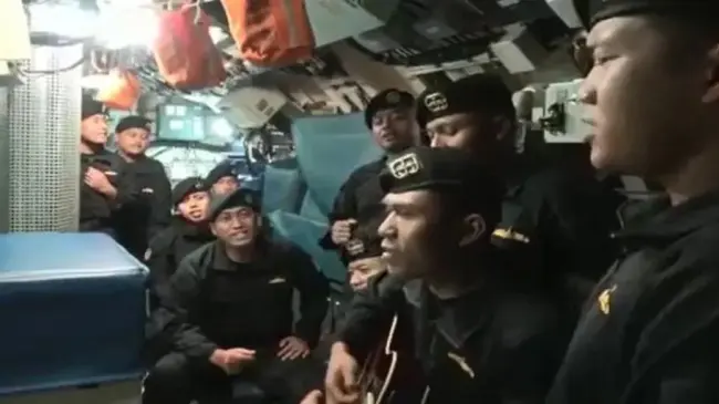 BALI, Indonesia.- Un vídeo de los marineros del submarino indonesio hundido que los muestra cantando una canción titulada "adiós" en el interior de la nave se ha convertido en viral y ha emocionado a muchos internautas en Indonesia tras la trágica muerte de sus 53 ocupantes.