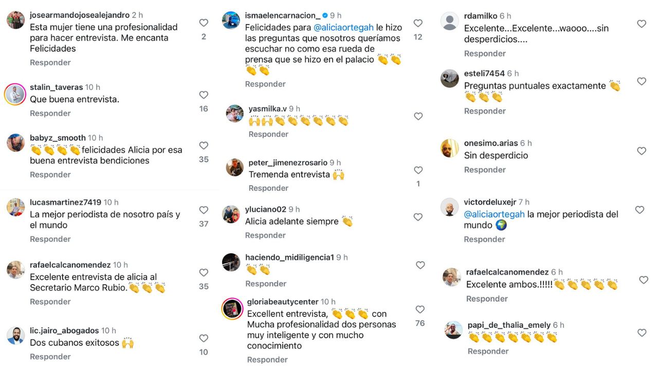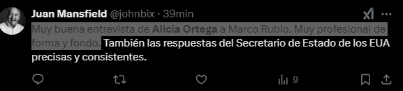 "Muy buena entrevista de Alicia Ortega a Marco Rubio. Muy profesional de forma y fondo", escribió un usuario llamado Juan Masfield.