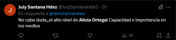 Alberto Hernández escribió: "¡Qué palo periodístico! La mejor periodista de este país, Alicia Ortega, como siempre, una profesional fuera de serie".