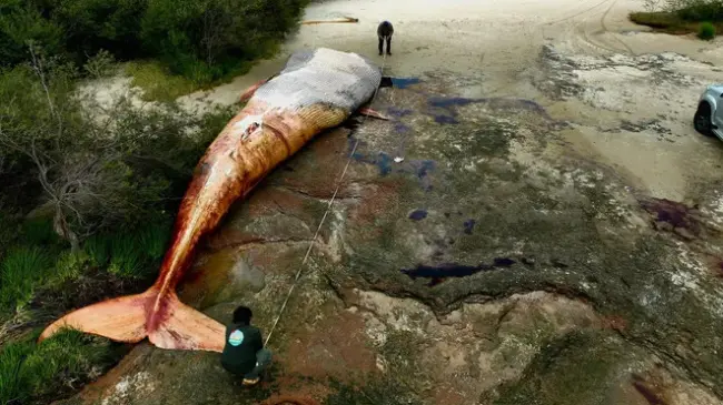 "Es una ballena que anda alrededor de las 20 toneladas más o menos. Mide 15,5 metros de largo y 3,4 de ancho", aseveró, a lo que puntualizó que la última vez que se vio un ejemplar de esta especie varado en el país suramericano fue hace un siglo.