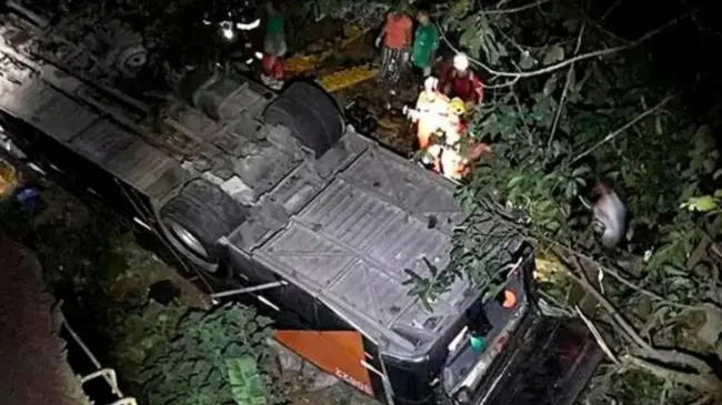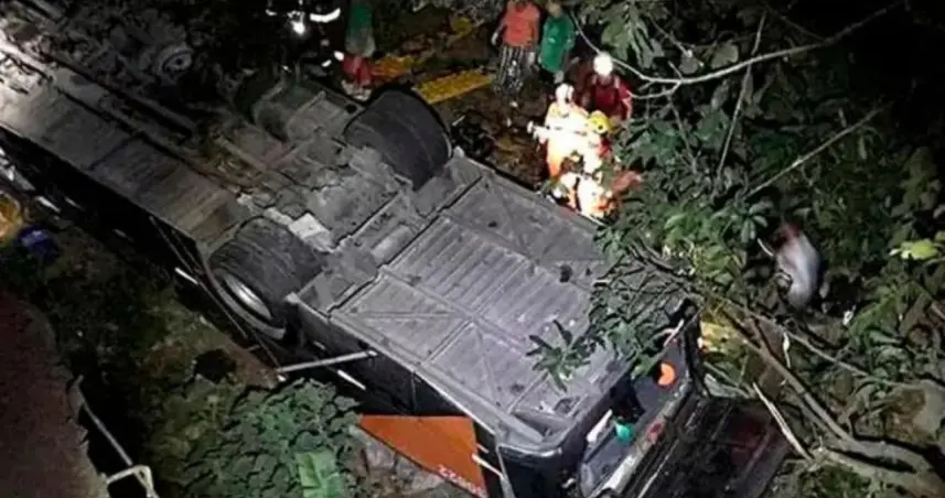 El accidente ocurrió esta madrugada en el municipio de Zarzal, en el norte del departamento del Valle del Cauca, cuando el autobús perdió el control, chocó contra una estructura metálica y volcó, según informaron las autoridades.