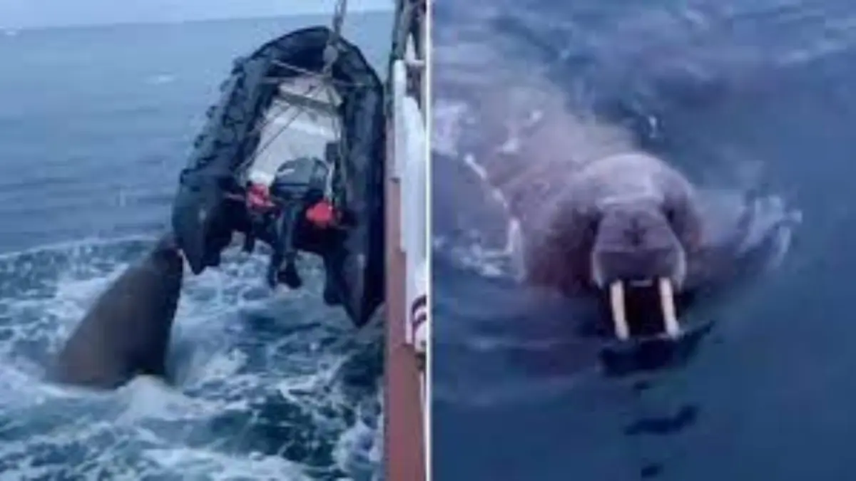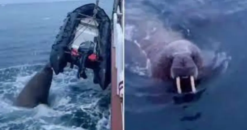 🦭 Morsa perfora con sus colmillos un bote inflable en el Ártico ruso