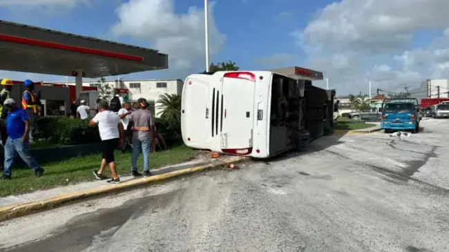 Según testigos, el chofer del bus, quien iba a alta velocidad de acuerdo a una turista, trató de esquivar un camión e impactó con una estación de combustible.