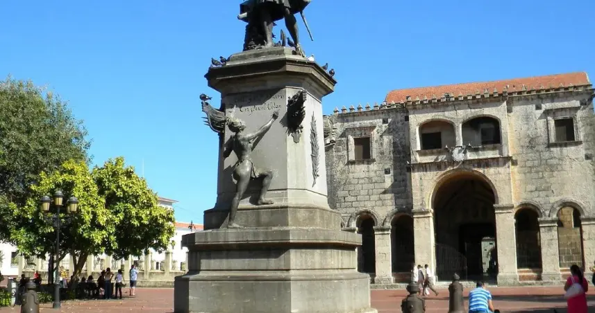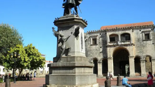 SANTO DOMINGO.- Una veintena de personas se concentró este martes bajo la estatua de Cristóbal Colón ubicada frente a la Catedral primada de América, para exigir la retirada del monumento al almirante de este emblemático punto de la capital dominicana.