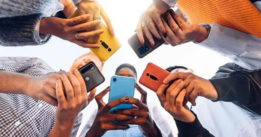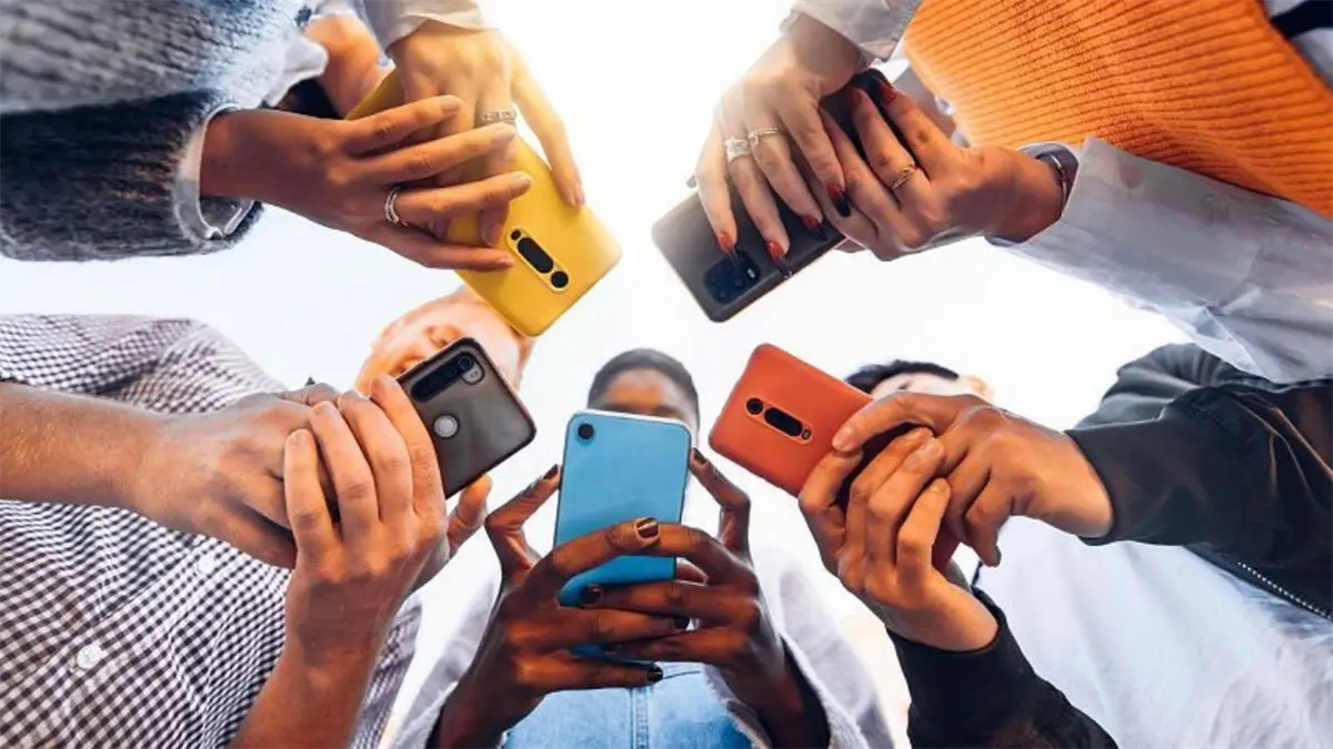 Personas con celulares en las manos.