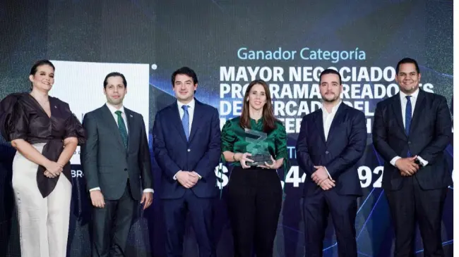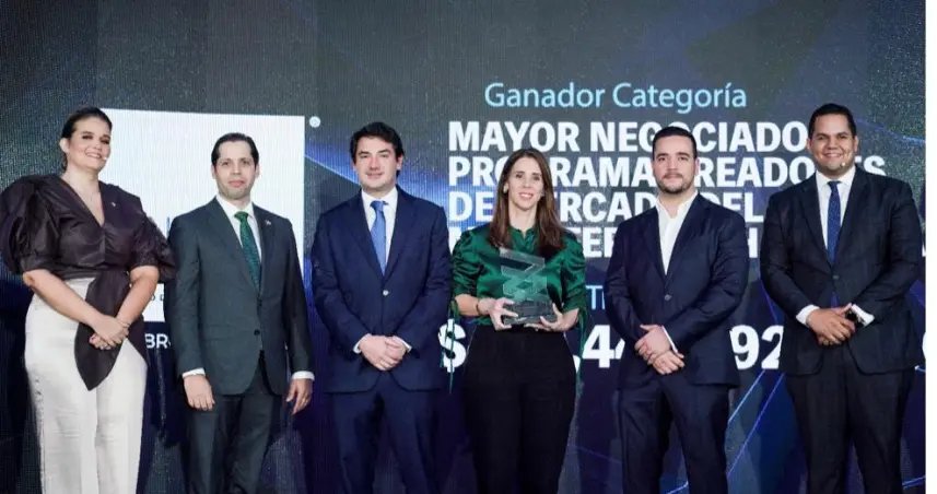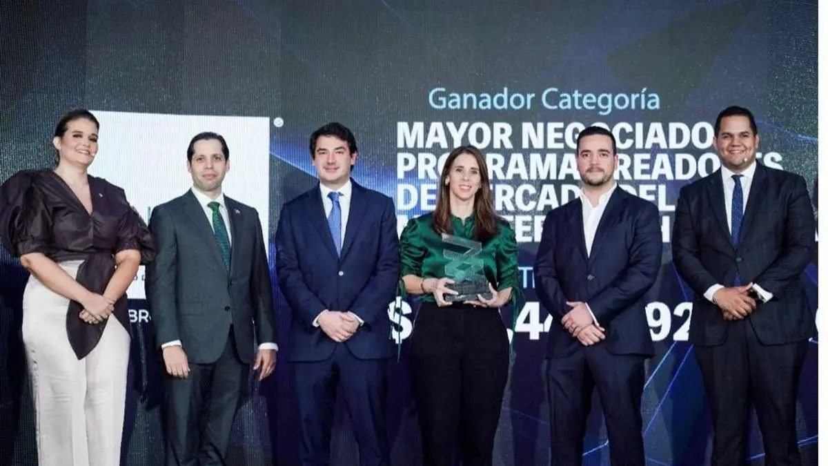 El premio fue entregado a los ejecutivos de United Capital por Elianne Vílchez, vicepresidente ejecutiva y gerente general de la BVRD, en compañía del nuevo superintendente del Mercado de Valores de República Dominicana, Ernesto Bournigal Read.