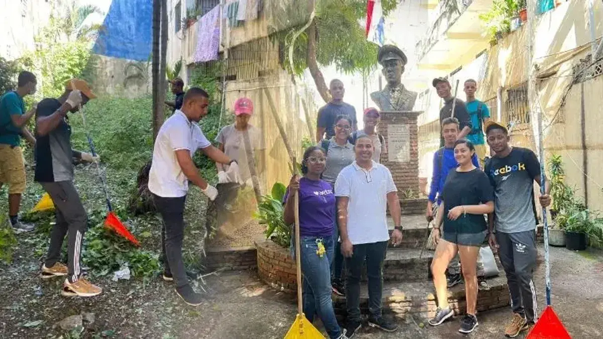 Al hablar en nombre del grupo de la Fuerza Joven Universitaria que hicieron la labor de limpieza, Yoel Jiménez, dijo: “Estamos aquí en el busto del teniente Amado García Guerrero, rescatando este espacio, que lamentablemente se encontraba muy abandonado”.