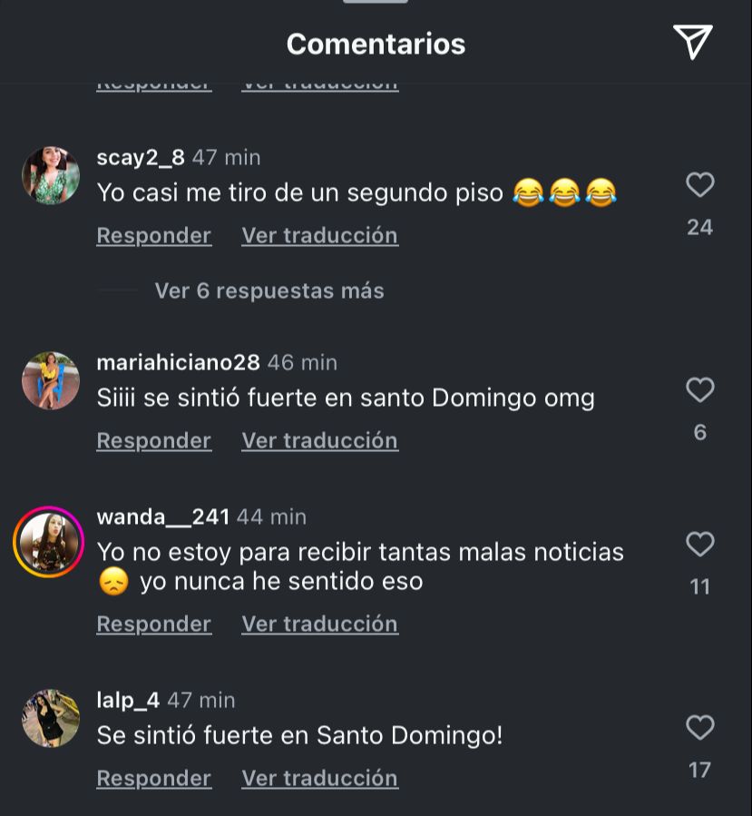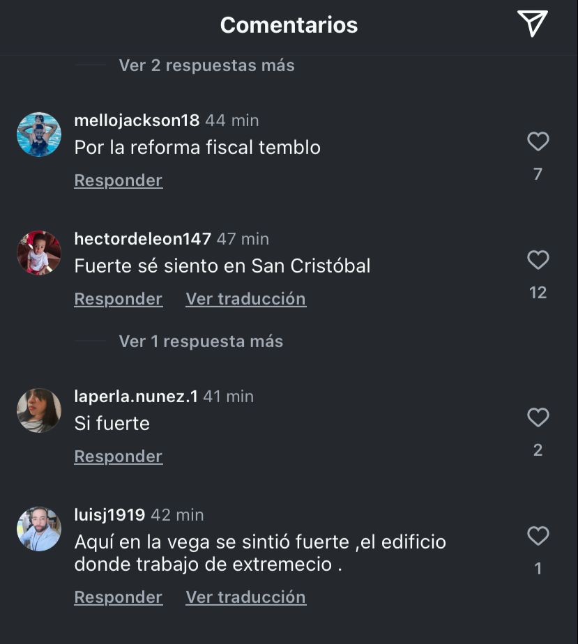 SANTO DOMINGO -.– SANTO DOMINGO. - Los usuarios de Instagram de Noticias SIN comentaron que el temblor de tierra registrado en el país aproximadamente a las 12:24 de la tarde “fue muy fuerte para ser de 4.4” y que se sintió en todo el territorio nacional y en algunas provincias.