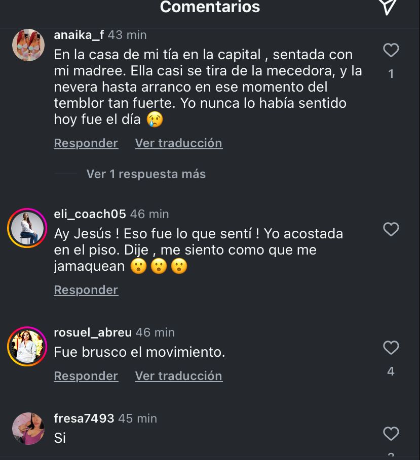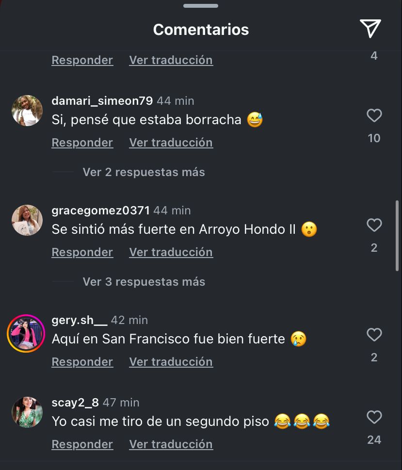 "Yo casi me tiro de un segundo piso", yo sentí que me jamaquearon", fue brusco el movimiento", comentaros otros seguidores.