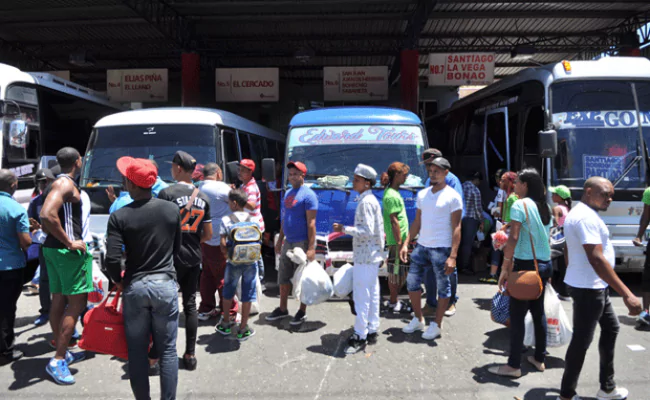 Santo Domingo.– Santo Domingo.- A horas de la noche algunas personas que decidieron aprovechar el asueto de la Semana Santa abarrotan las paradas de autobuses con destino al interior del país.