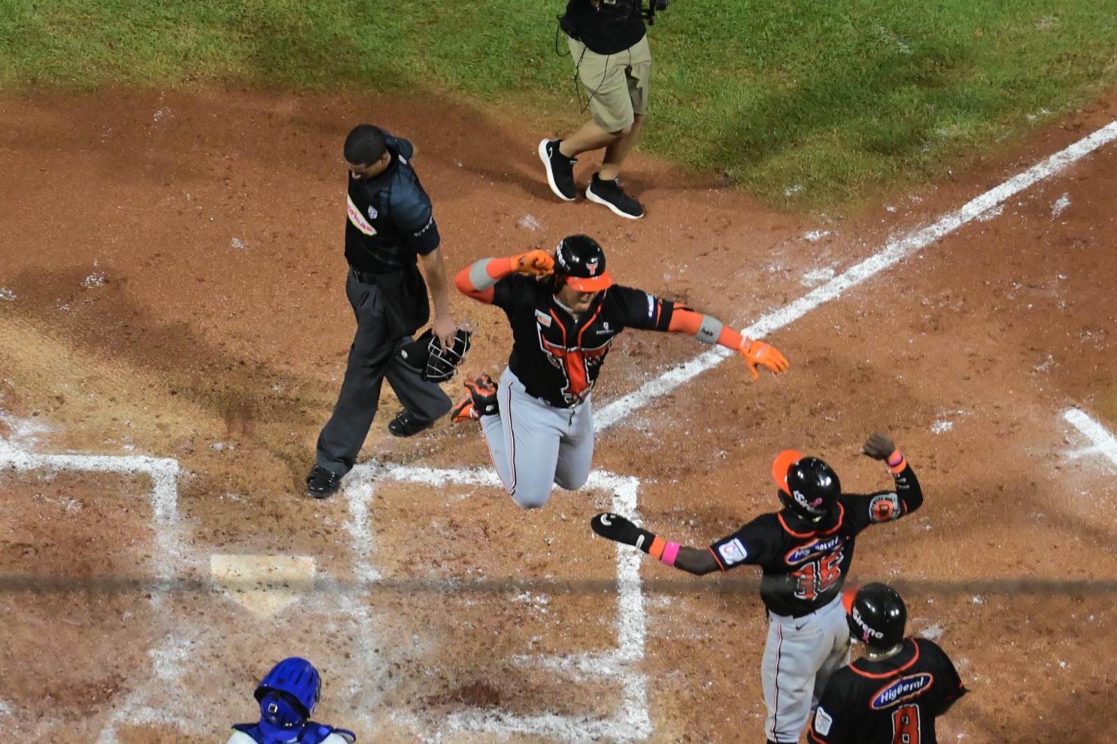 Luego, en la cuarta entrada, Aneury Tavárez pegó sencillo remolcando a Cristhian Adames empatando las acciones y en la misma entrada Pablo Reyes debutó en grande con doble remolcador al prado derecho para tomar la delantera 2-1.