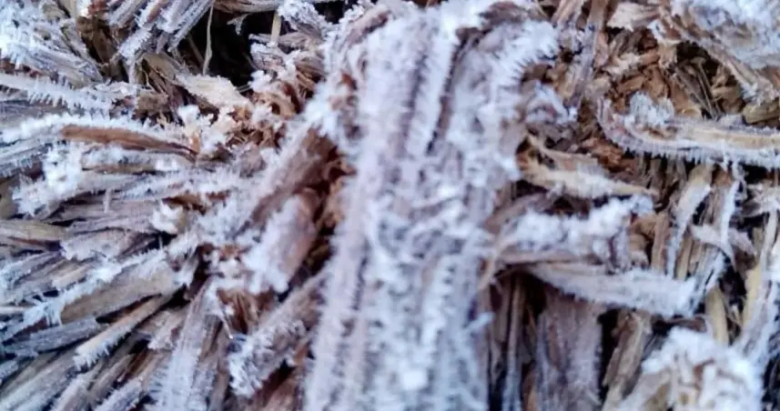 La lectura de los termómetros alrededor de las 06:38 a.m., marcaban la cifra de -2 °C, con lo que se creó nuevamente la alfombra blanca por la formación de escarcha en los pajones de los alrededores de Las Pirámides.