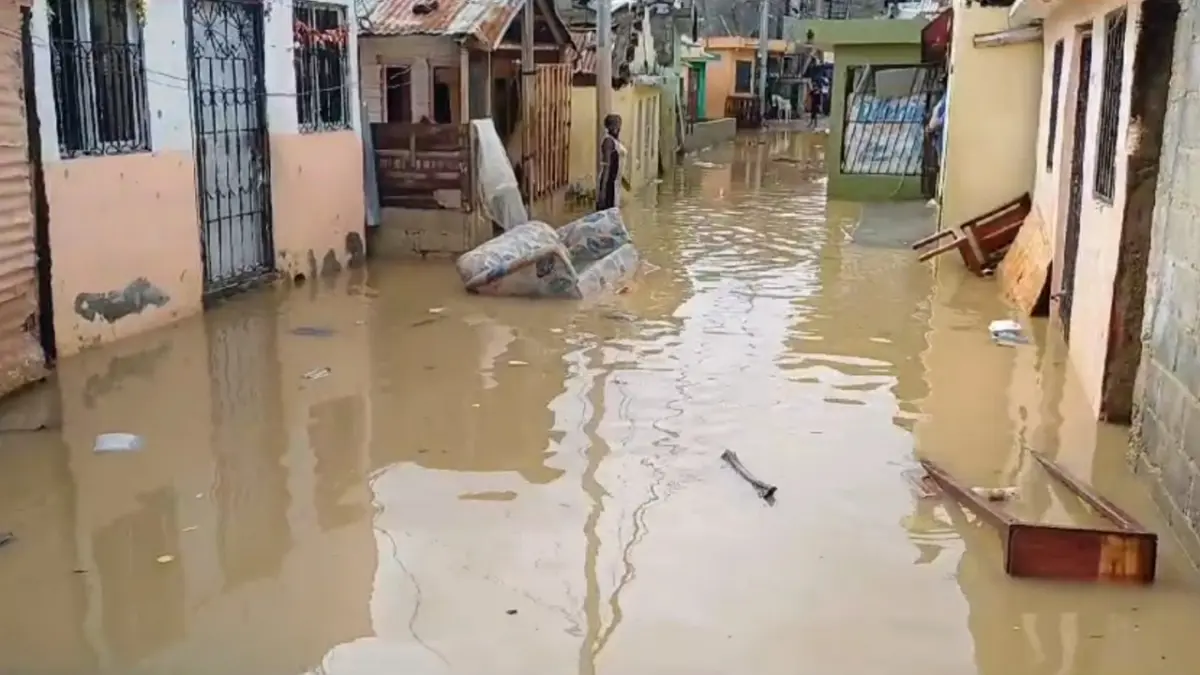 Varios sectores inundados por lluvias en Santo Domingo Norte