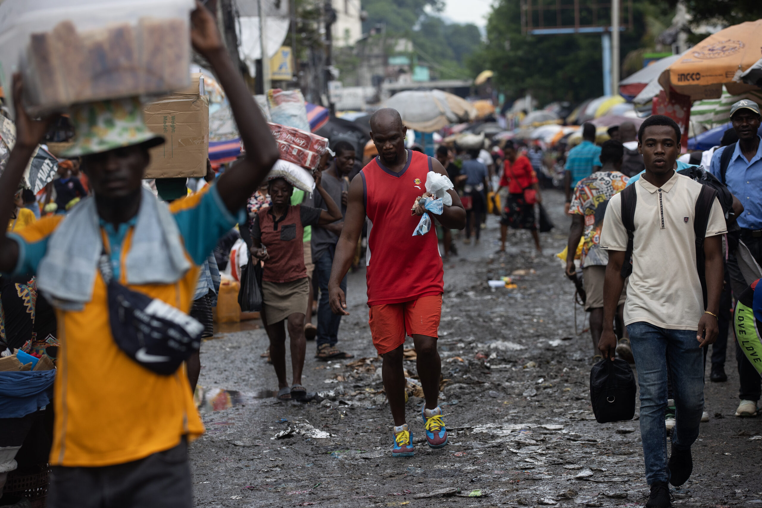 Vendedores y compradores llenan el mercado de Puerto Príncipe en medio de la basura