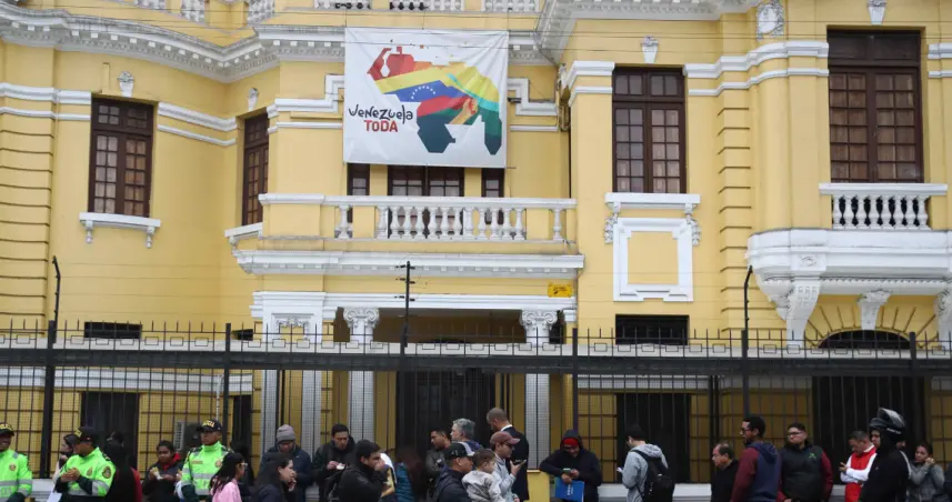 Lima. - Cientos de venezolanos se congregaron durante la jornada del martes en la embajada de su país en la capital peruana, debido al anuncio de la suspensión de la atención consular por parte de la delegación diplomática de Venezuela, tras la medida del Gobierno de Perú de expulsar a sus diplomáticos.