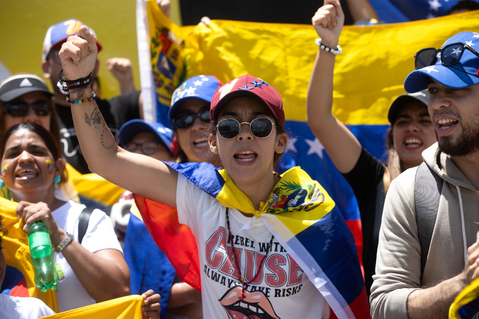 "Cada minuto tenemos noticias distintas. Aún estamos esperando que María Corina Machado llegue a Las Mercedes (en Caracas) y se dirija al pueblo venezolano junto con Edmundo González, y hasta que esto no suceda vamos a estar aquí plantados, dando ese apoyo desde acá", anunció.