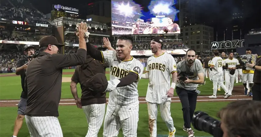 Fue el recién llegado venezolano Freddy Fermín quien conectó el batazo de oro en el 11mo inning --la primera vez en la historia de la franquicia que los Padres sellan su pase a los playoffs con un walk-off. Colectivamente, salieron del dugout local para abrazar a Fermín en el terreno. Otro lleno total en Petco Park estalló.
