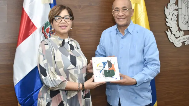 Santo Domingo.– Santo Domingo.- La viceministra de Cooperación Internacional del Ministerio de Economía, Planificación y Desarrollo, Olaya Dotel Caraballo, recibió del embajador de la República Dominicana en Colombia, Félix Aracena Vargas, un reconocimiento por el desempeño y las metas alcanzadas que ha tenido el actual Programa de Cooperación Bilateral aprobado en la VII Reunión de la Comisión Mixta de Cooperación Técnica y Científica entre Colombia y República Dominicana 2023-2025, con un total de 14 proyectos en ejecución, lo que representa la programación más amplia en la historia de cooperación entre ambos países.
