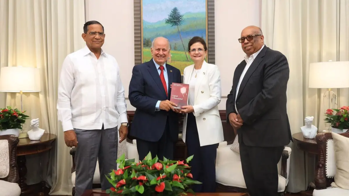Se aprovechó el encuentro para entregar a la vicepresidenta Raquel Peña un ejemplar del libro Capital y Humanidad, de la autoría de los economistas doctores Jacqueline Boin y José Serulle Ramia.