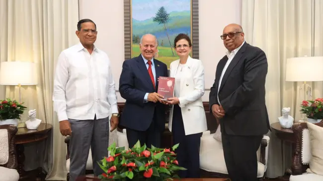 La vicemandataria se reunió en el Palacio Nacional con el presidente-fundador de la FCA, embajador José Serulle Ramia, el cónsul Miguel Valenzuela y el exsenador y empresario turístico Héctor Rodríguez Pimentel.