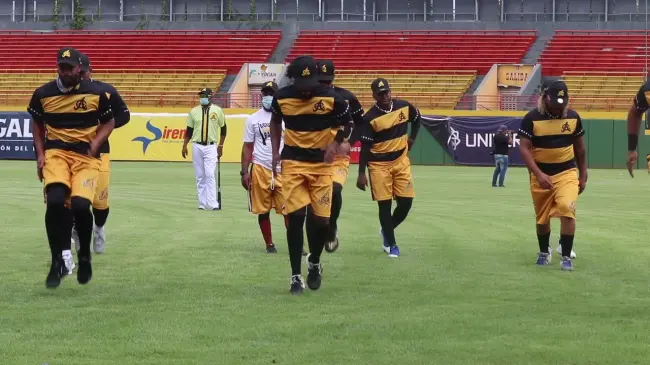 Luego de una oración al todopoderoso, los jugadores gritaron al unísono ¡El Equipo Grande está de regreso! Para comenzar a trotar por el verde y majestuoso parque de béisbol.