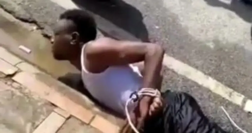REDACCIÓN.-Un presunto delincuente es golpeado por varias personas mientras está atado de manos y tirado en la calle con lágrimas en los ojos, según se observa en un video que circula en las redes sociales.